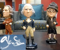 It was very cool of Fox News to give our bobbleheads a featured spot on their hit show with Greg Gutfeld. Pictured is our giant sized George Washington bobblehead that travels with us to our trade shows.